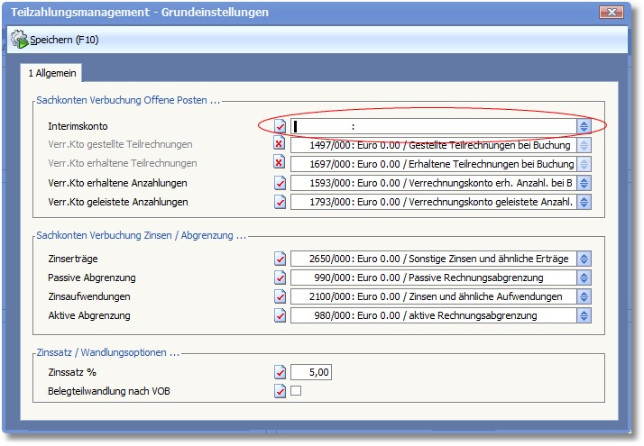 Ein im Feld INTERIMSKONTO eingetragener Wert ist ggf. zu entfernen.