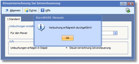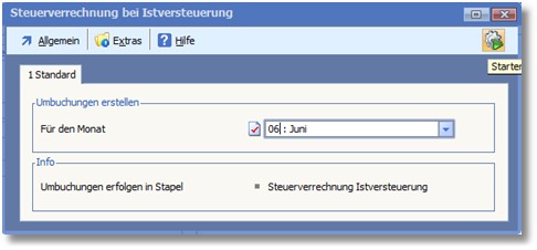 Im Anschluss kann die „Steuerverrechnung Istversteuerung“ aus dem Buchungsstapel heraus vorgenommen werden: