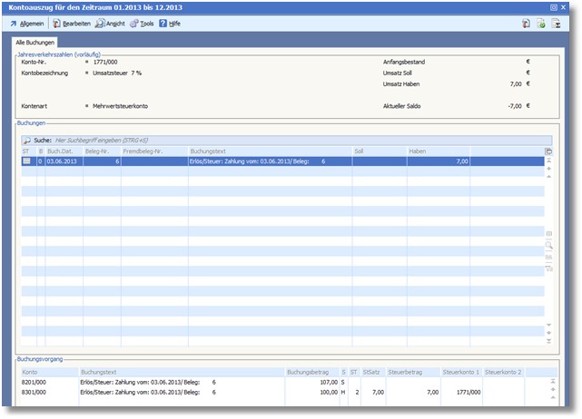 Abb.        USt-Kontennachweis mit Buchungsnachweis