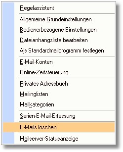 2. Klicken Sie dann mit der Maus auf den Menüeintrag „E-Mails löschen".