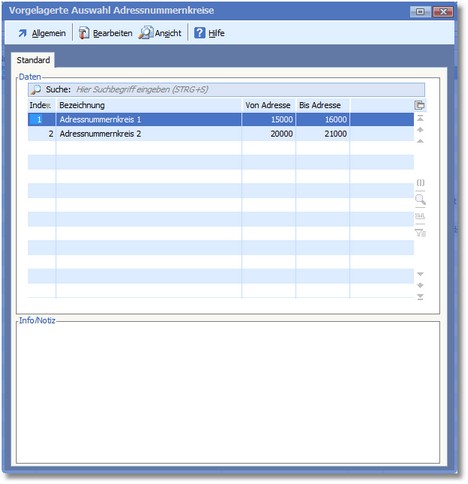 << Hier KLicken um eine Inhaltsübersicht anzuzeigen >> Navigation: OfficePlaner > Stammdaten > Adressstamm > Adressnummernkreise |