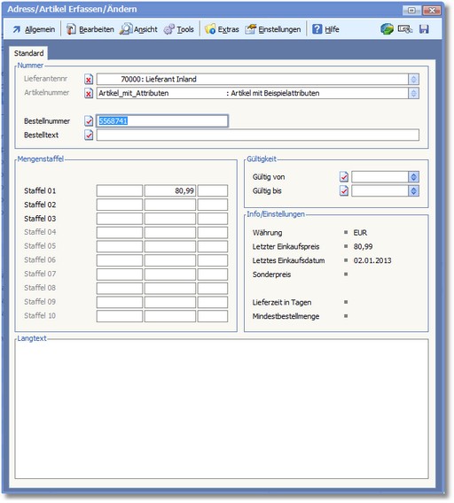 Navigation:  Warenwirtschaft > Stammdaten > Konditionen > Adress/Artikel >