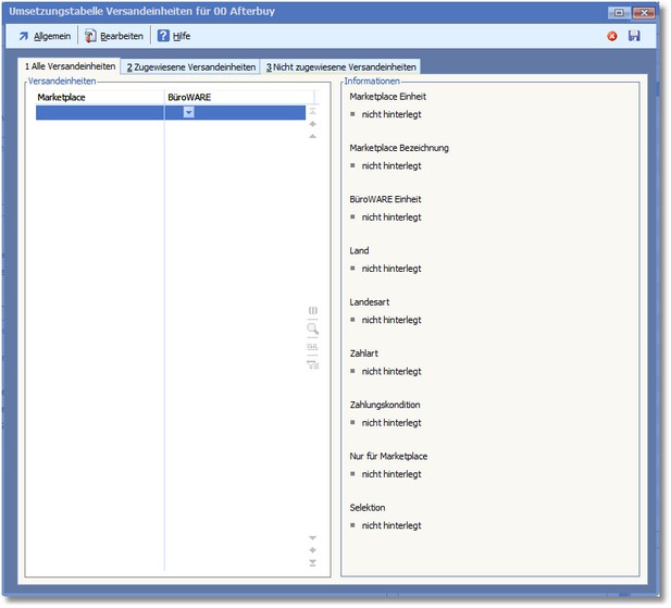 Navigation:  Warenwirtschaft > Extras > Shopmanager > Marketplaces > Afterbuy > Marketplace verwalten > Umsetzungstabellen >