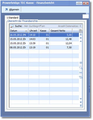 Im Finanzbericht erhalten Sie detaillierte Informationen über due Umsätze des Tages.