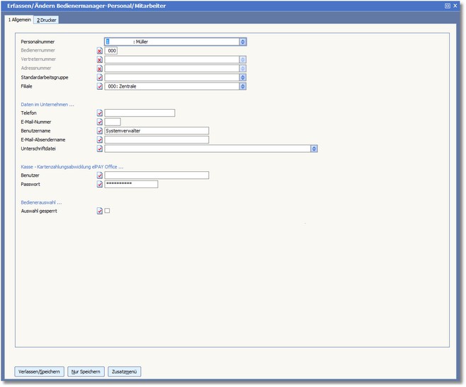 Diese Felder enthalten die Personalnummer und die Bedienernummer des Mitarbeiters.
