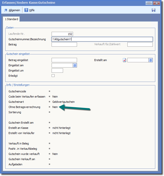Dadurch ist es möglich, die "Altgutscheine" einzulösen, ohne, dass man diese im System vorher einzeln angelegt haben muss.