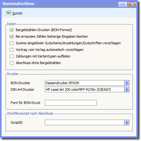 In diesem Feld können Sie ein Workflowscript hinterlegen, welches nach Kassenabschluss ausgeführt werden soll.