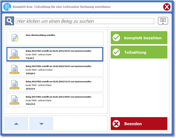 Anschließend wird der Dialog für die Rechnungszahlung geöffnet.