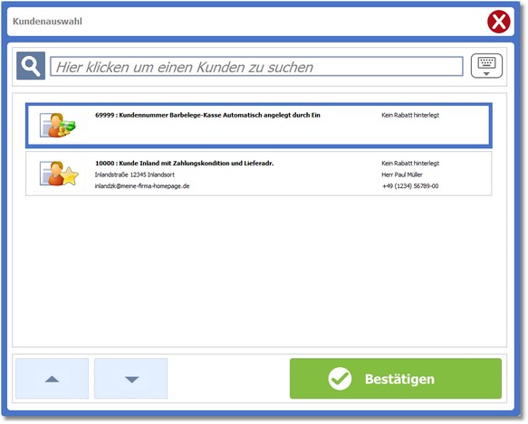 2. Um zwischen den aufgelisteten Kunden zu navigieren, können Sie die Pfeilbuttons im unteren Fensterbereich nutzen.