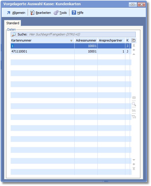 Hier werden die Kundenkarten verwaltet, die an einer Kasse eingelesen werden können, um einen schnellen Kundenwechsel durchzuführen.
