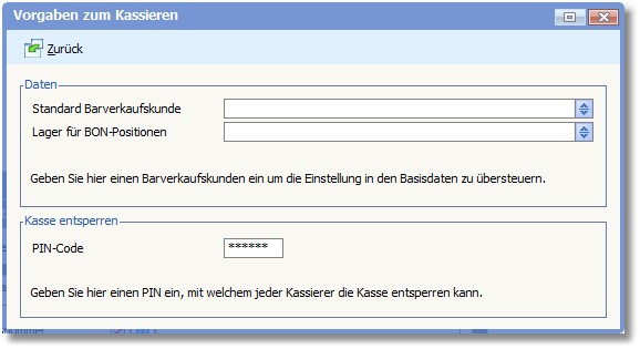 Legen Sie in dieser Optionsmaske Einstellungen zum Kassieren fest, welche nur für diese Kasse gelten und ggf. die Grundeinstellungen für alle Kassen übersteuern: