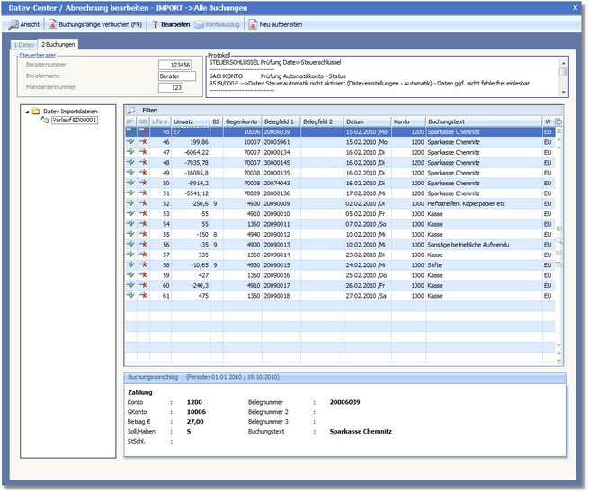 So können Sie Buchungen der Importdatei bearbeiten: