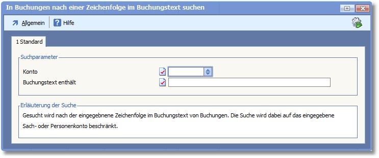 So können Sie in der Buchungsmaske nach einer Zeichenfolge im Buchungstext suchen: