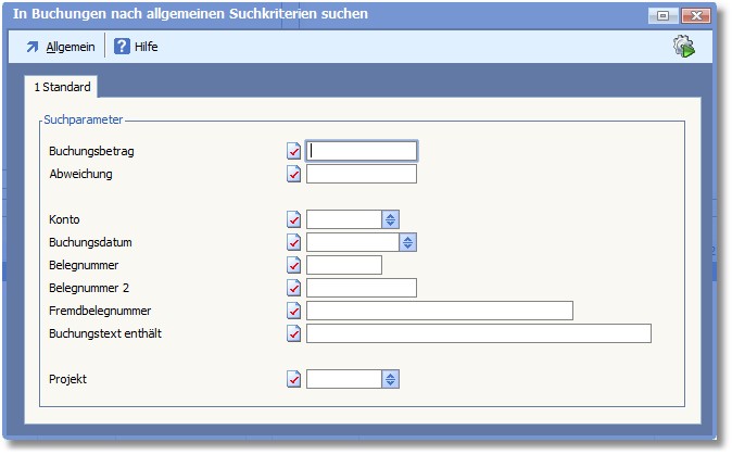 So können Sie in der Buchungsmaske nach allgemeinen Kriterien suchen: