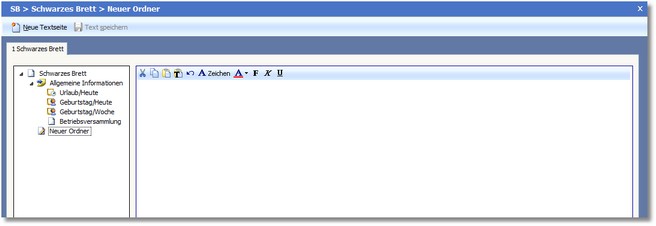 Die Symbolleiste stellt die Funktionen für das Anlegen neuer Textseiten und das Speichern der Texte zur Verfügung.