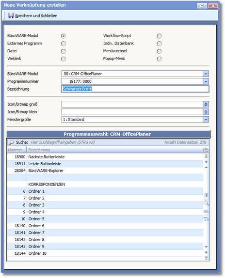 BüroWARE öffnet den Dialog "Neue Verknüpfung erstellen".