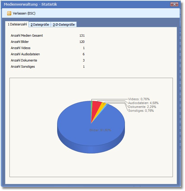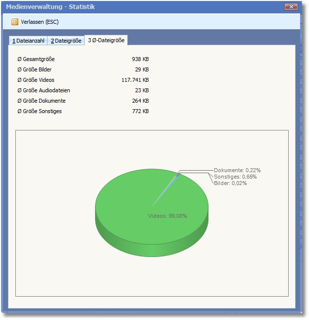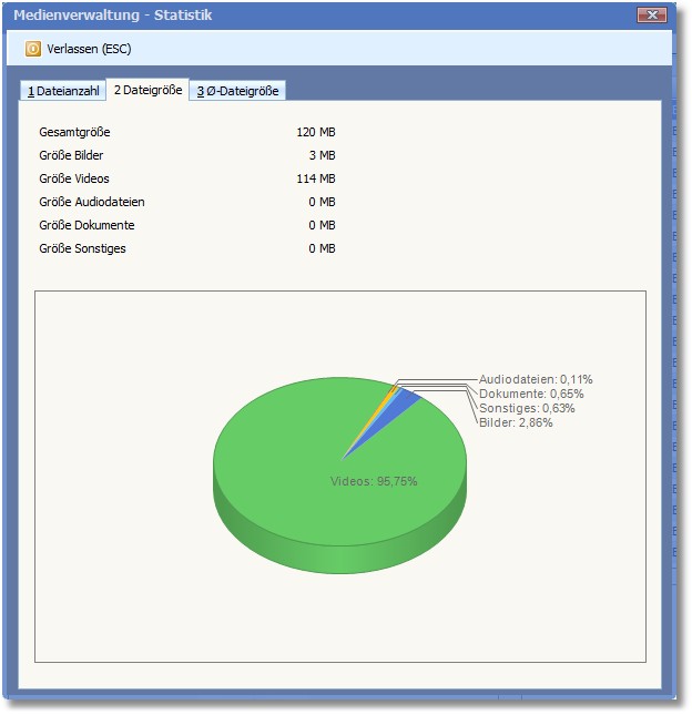 Hier wird die Dateigröße der Medien statistisch aufbereitet.