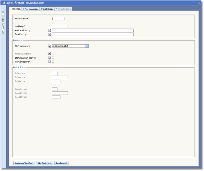 1. Drücken Sie in der vorgelagerten Auswahltabelle der Provisionscodes die Funktionstaste [F3] oder wählen Sie den Menüeintrag "Allgemein > Neuer Provisionscode".