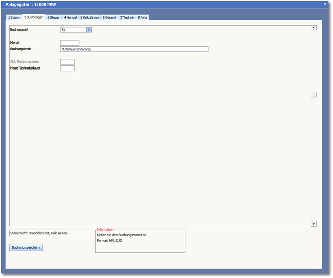 Eine Änderung der Restnutzdauer nehmen Sie über die Buchungsart 51 vor: