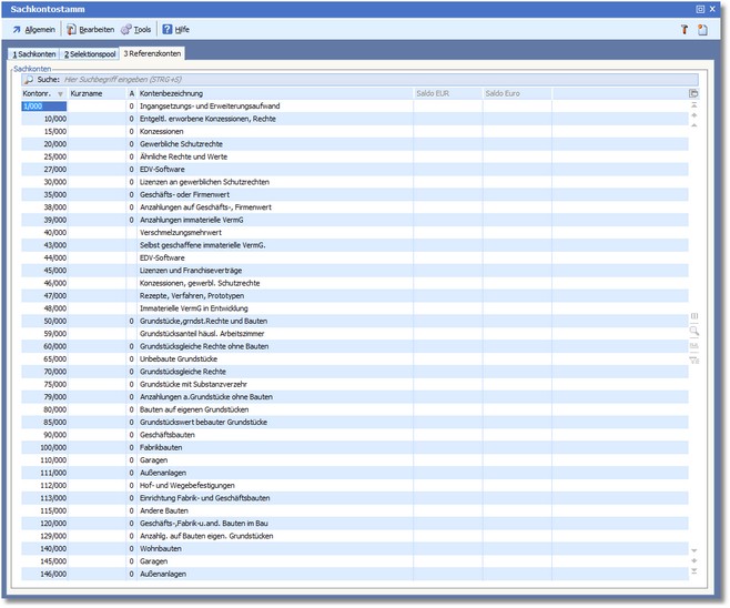 Die Karteikarte "Referenzkonten"