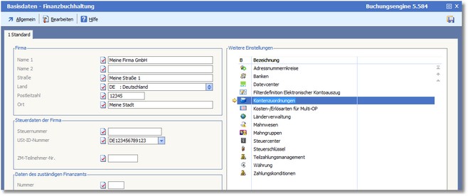 Die Basisdaten der Finanzbuchhaltung werden geöffnet.