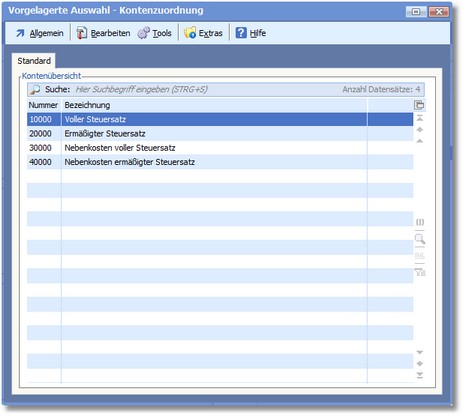 Das Programm öffnet die vorgelagerte Auswahl Kontenzuordnung.