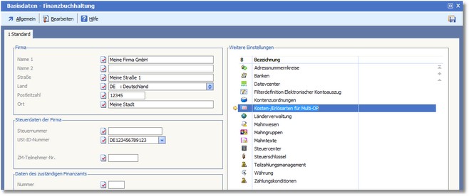 Die Basisdaten der Finanzbuchhaltung werden geöffnet.