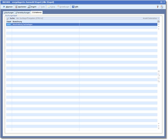 Sie werden in der Karteikarte "Schablonen" in der Buchungserfassung angelegt und verwaltet.
