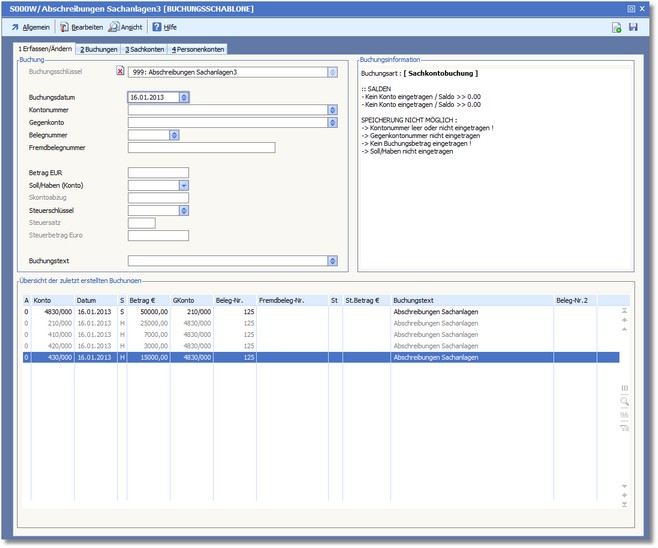 << Hier KLicken um eine Inhaltsübersicht anzuzeigen >> Navigation: Finanzbuchhaltung > Laufende Vorgänge > Stapelbuchungen > Die Karteikarte "Schablonen" > Schablonen anlegen und ändern |