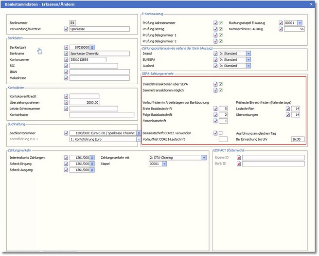 SEPA-Einstellungen im Bankenstamm