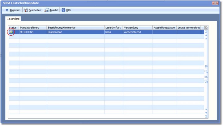 Der Dialog "SEPA Lastschriftmandate" wird geöffnet.