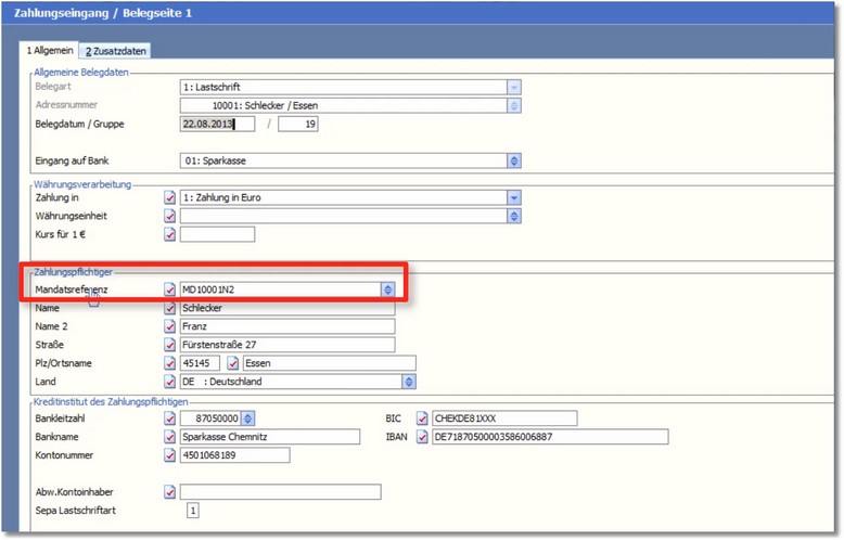 In diesen Personenkonten muss ebenfalls eine korrekte Bankverbindung mit BIC- und IBAN-Nummer vorhanden sein.