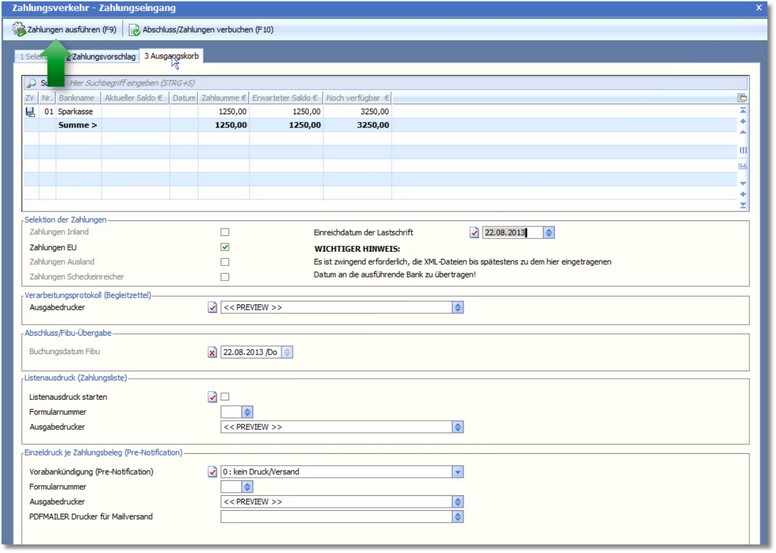 6. Mit [F9] oder Klick auf den Symbolbutton <Zahlungen ausführen> können Sie die Zahlungen nun ausführen.