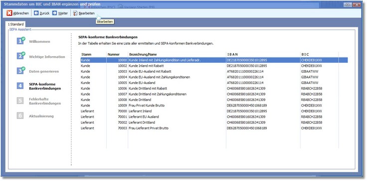 Stammdaten um BIC und IBAN ergänzen und prüfen