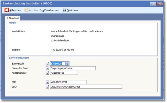 Zu jeder Adresse können Sie Bankdaten erfassen. Oft sind jedoch nur die nationale Bankleitzahl und die Kontonummer in den Stammdaten eingetragen.