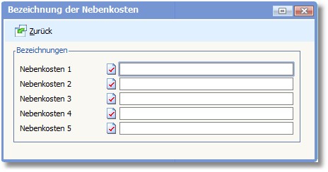 Hier können Sie Bezeichnungen für bis zu 5 Nebenkosten erfassen. Die Nebenkosten werden auf die Erlöskonten verbucht, die in der Kontenzuordnung hinterlegt sind.