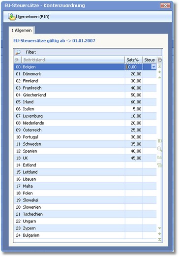 Um EU-Steuersätze einzugeben, klicken Sie auf den Symbolbutton <EU-Steuersätze>.