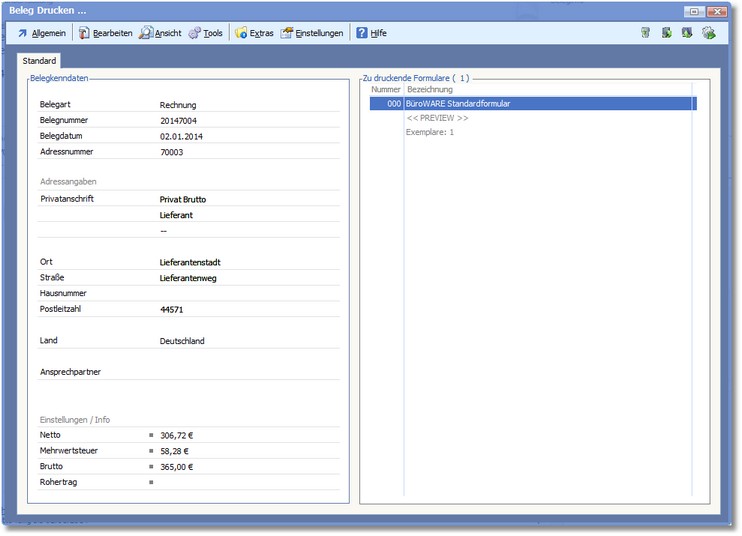 Beleg drucken