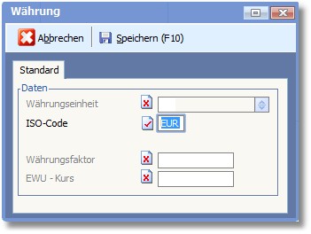 In diesem Dialog sind die Angaben für die Belegwährung einzutragen.