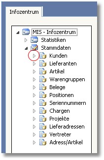 1. Klicken Sie mit der Maus im Infozentrum auf die Pfeile links neben "MIS-Infozentrum",