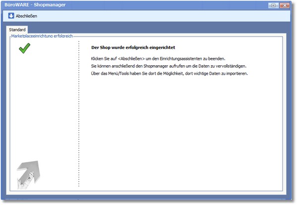 Das Programm richtet nun Ihren neuen Marketplace ein und übernimmt die Daten vom Shop, sofern die Option für die Artikelübernahme gesetzt wurde.