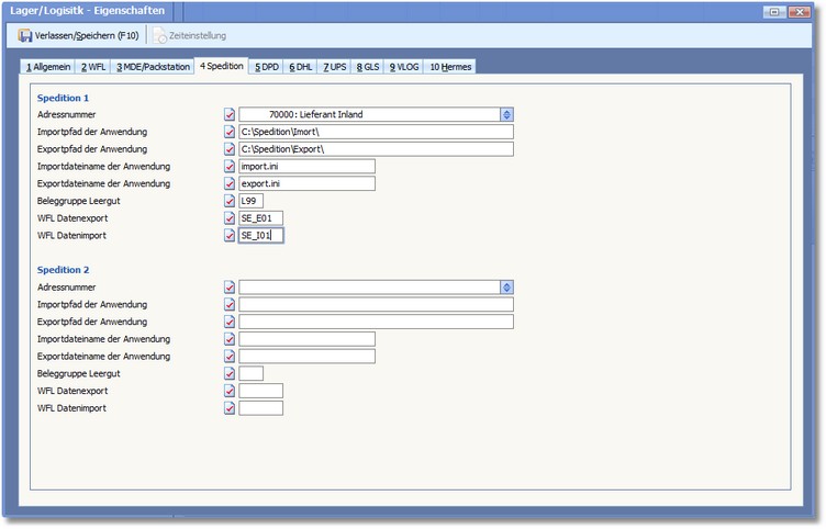 Die Karteikarte "Spedition"
